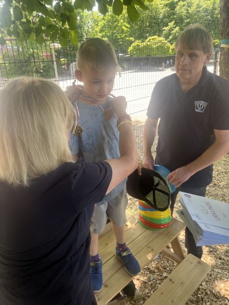 Im Rahmen der Siegerehrung wurden alle Kinder namentlich aufgerufen und durften stolz ihre Urkunde, eine Medaille sowie eine Frisbeescheibe entgegennehmen – sichtbare Zeichen ihres Erfolges und ihrer Bewegungsfreude. Damit endete ein erlebnisreicher Tag voller positiver Eindrücke und wertvoller Erfahrungen.